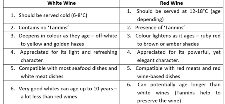 Differences between Red and White wine