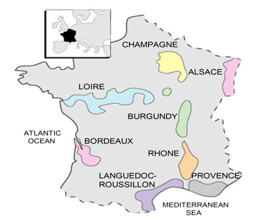 Wine is produced in all the France except in the most northern part. The following regions stand out to be the major wine producing regions because of the amount & the quality of wine produced.